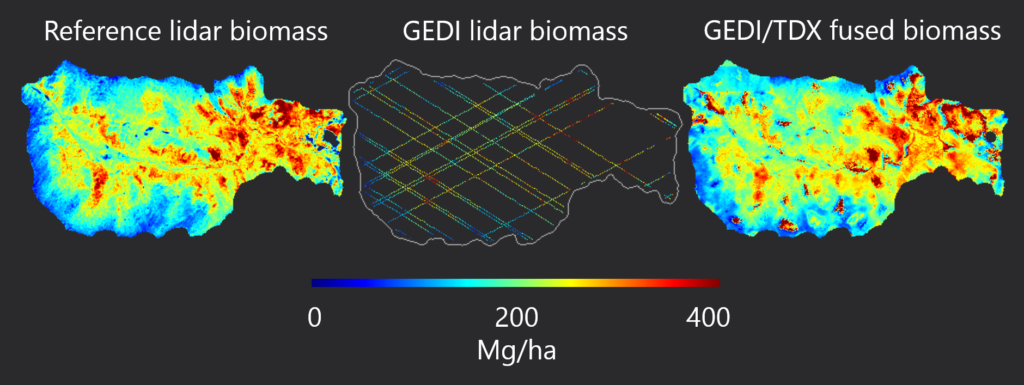 The GEDI mission provides publicly available footprint and gridded datasets that describe the 3D features of the Earth. The products are assigned to different levels which indicate the amount of processing that the data has undergone since collection. Also available from GEDI are demonstrative products - outputs created specifically for limited domains. Of these are included prognostic ecosystem model outputs, such as the Ecosystem Demography model (ED). ED provides estimates of carbon stocks and fluxes over large areas at a fine resolution. It is a height structured model derived from lidar data. Also included in the demonstrative products are enhanced height/biomass models using fusion with TanDEM-X and with Landsat, and biodiversity and habitat models. 11)