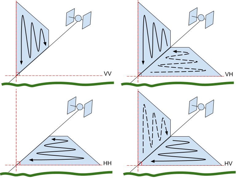 Figure 2: Polarisation combinations for SAR signals. (Image credit: ASF)