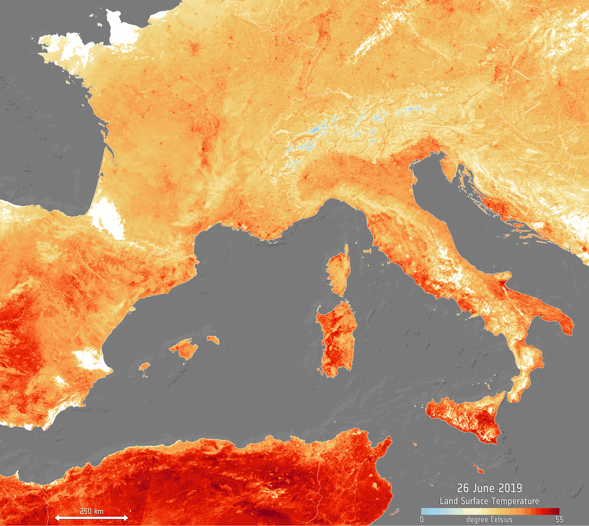 Land Surface Temperature (LST) maps represent the temperature of the Earth’s uppermost surface layers, providing critical insights into the thermal state of soils, vegetation, urban structures, and water bodies. These maps are widely used across a range of scientific fields, including meteorology, climatology, hydrology, ecology, and biophysical and biochemical research. LST is derived from ground-based instruments, airborne sensors, and spaceborne platforms. LST products also serve as an independent source of temperature data, complementing in situ observations and atmospheric reanalysis products. This makes them crucial for climate monitoring and policy frameworks such as the UNFCCC Paris Agreement. The Global Climate Observing System (GCOS) has hence defined LST as an Essential Climate Variable (ECV). 8) 9)