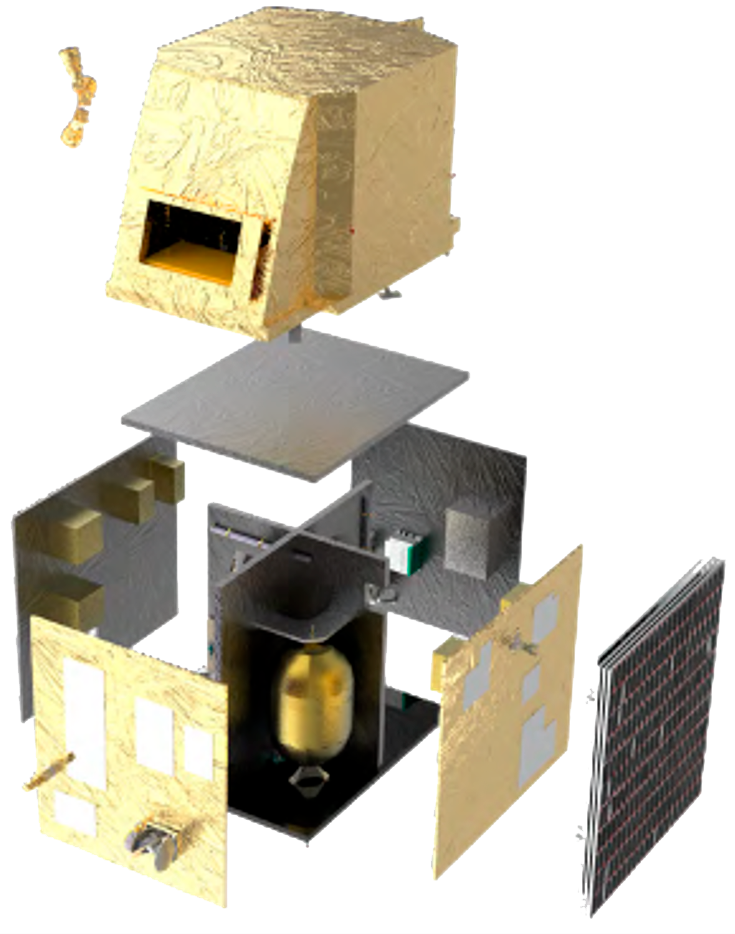 The platform of the CHIME satellites operates in a gyroless nominal mode, with a safe mode relying on a magnetometer, sun sensors, reaction wheels, and magnetic actuators. The onboard computer is fully autonomous and internally redundant, incorporating GNSS (Global Navigation Satellite System) receivers. CHIME has a data processing unit (DPU) capable of cloud detection and data compression, using artificial intelligence techniques. 3)