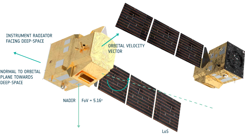 Each satellite has a launch mass of approximately 1640 kg, including 500 kg for the instrument, and is designed for a seven-year operational lifetime. The spacecraft operates in a gyroless nominal mode and includes autonomous, redundant onboard systems with GNSS, cloud detection, and AI-based data compression.