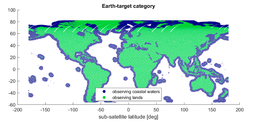 The two CHIME satellites will operate in identical sun-synchronous orbits at an altitude of 632 km, with an inclination of 97.9° and an orbital period of approximately 97.5 minutes. They will be separated by 180°. Each satellite completes approximately 14.7 orbits per day, providing coverage of land surfaces between latitudes of 84° North and 56° South, including islands larger than 100 km2 and shallow coastal waters up to 50 m in depth. 1)