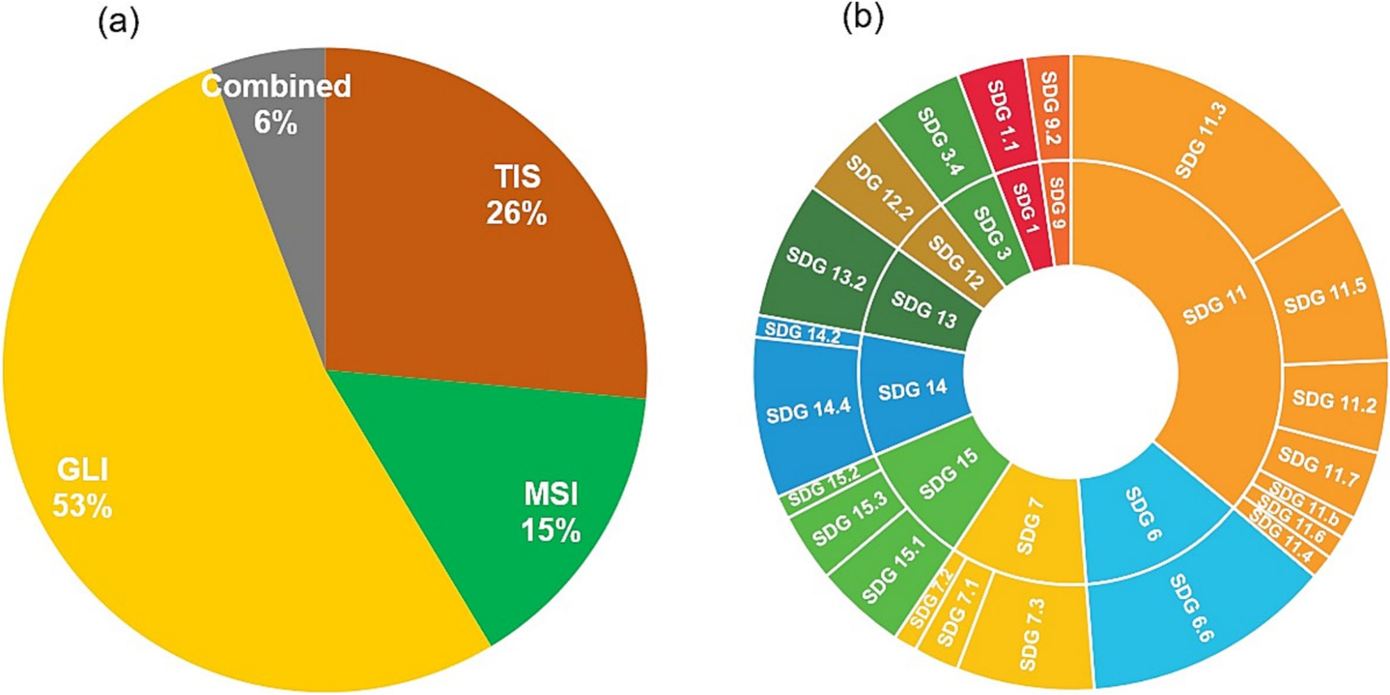 MSI imagery is used specifically for monitoring vegetation and water resources (SDG 6), enabling assessments of water quality monitoring, suspended sediment concentration, and total suspended matter, as well as improving classification of turbid and eutrophic waters. Its high spatial resolution also enhances detection of harmful algal blooms (HABs) and supports oceanic vortex analysis using deep learning methods. While TIS monitors desertification and soil salinity patterns, and MSI land cover change detection. 1) 8)