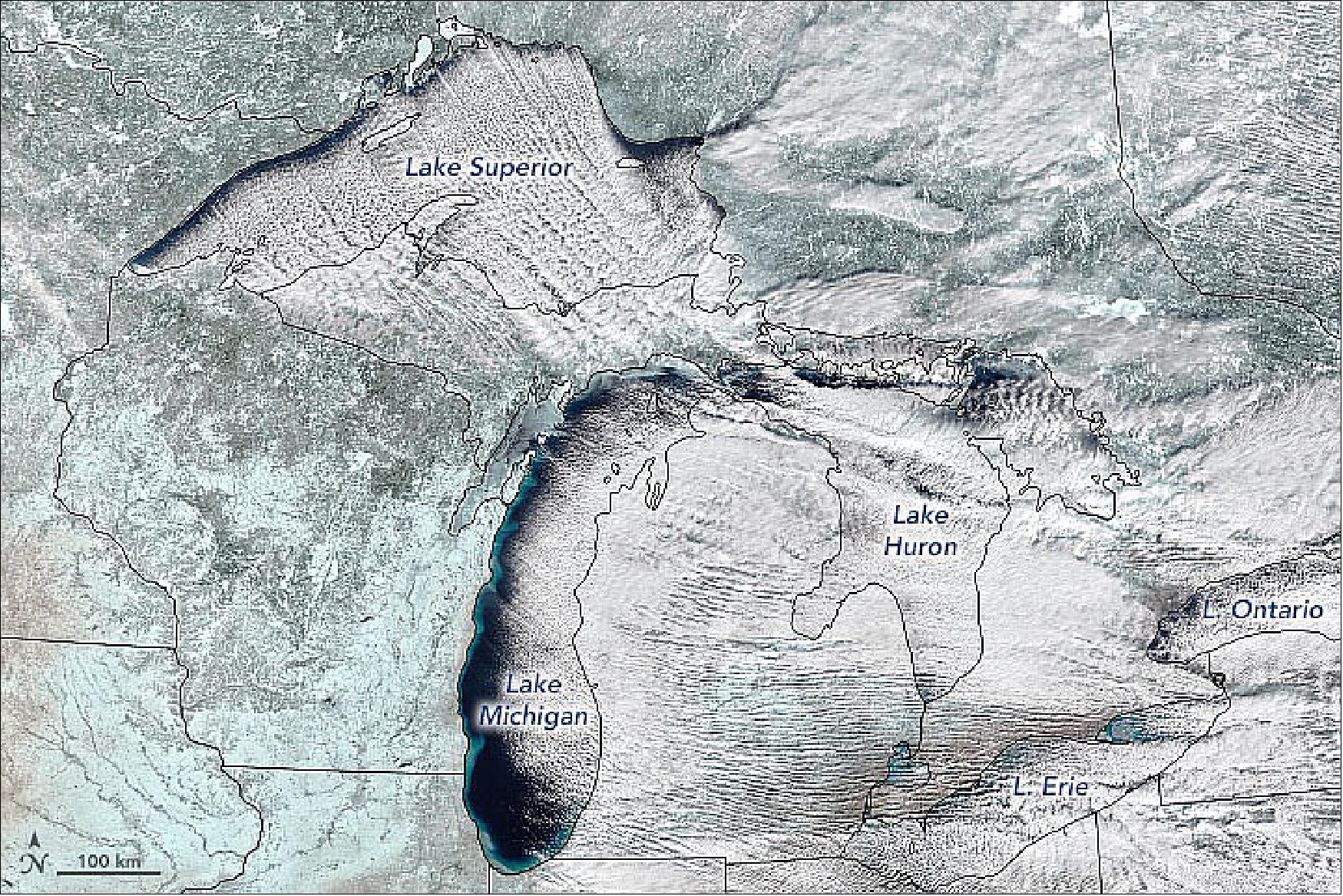 27) ”Great Lakes Cloud Streets,” NASA Earth Observatory, Image of the Day for 17 January 2022, URL:https://web.archive.org/web/20250629215429/https://earthobservatory.nasa.gov/images/149339/great-lakes-cloud-streets