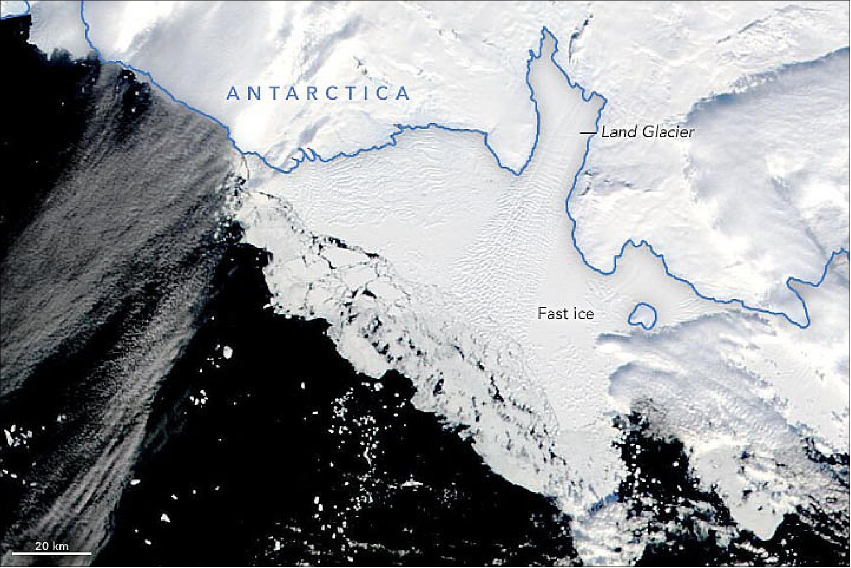 20) ”Breakup at Land Glacier,” NASA Earth Observatory, Image of the Day for 2 April 2022, URL: https://web.archive.org/web/20250707201605/https://earthobservatory.nasa.gov/images/149650/breakup-at-land-glacier