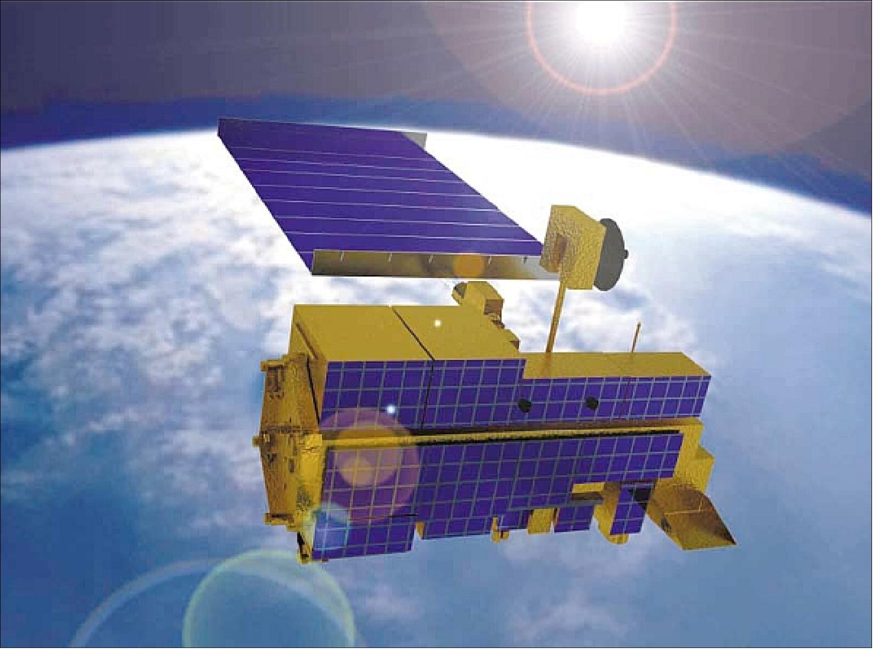 Launched in December 1999, Terra (formerly known as EOS/AM-1) is a joint mission within NASA’s ESE (Earth Science Enterprise) program between the US, Japan and Canada. With an original design life of six years, the operation has been extended to continue to provide an extensive variety of valuable data on Earth’s atmosphere, land surface, ocean and cryosphere.